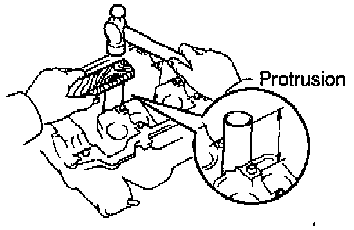 b. Using a wooden block and hammer, tap in a new spark tube until there is 48.4 - 49.6 mm (1.906 -1 .953 inch) protruding from the camshaft bearing cap installation surface of the cylinder head.