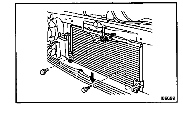 b. Lift up the condenser, then remove the 4 bolts and 2 lower bracket.
