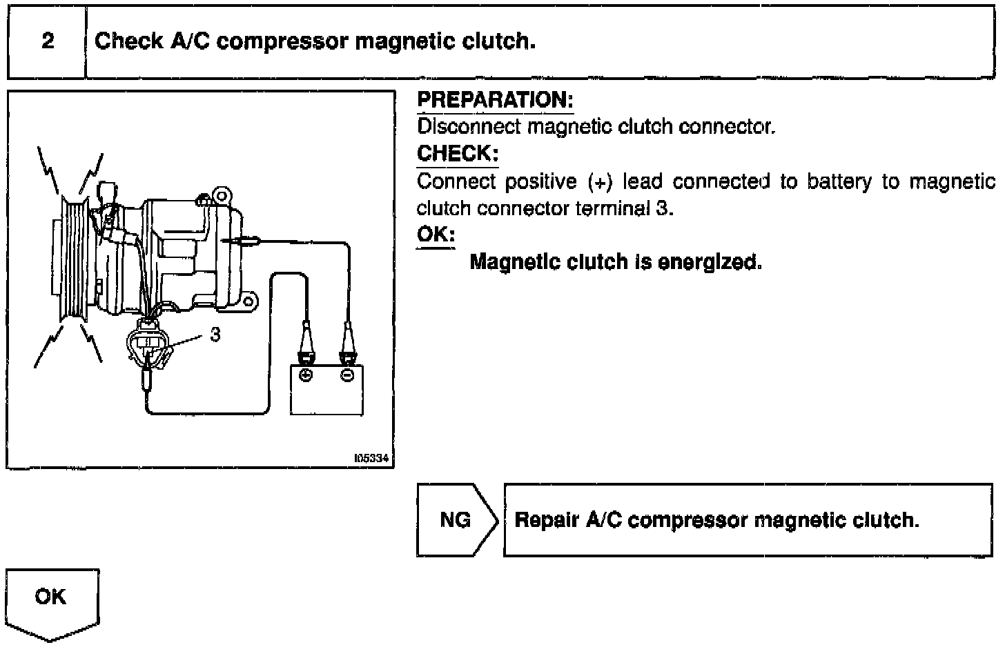 A/C amplifier switches the A/C magnetic clutch relay ON, thus turning the A/C compressor magnetic clutch ON.