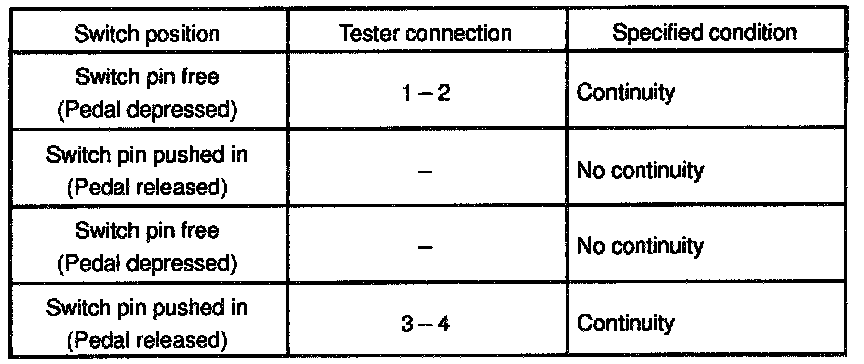 If continuity is not as specified, replace the switch.