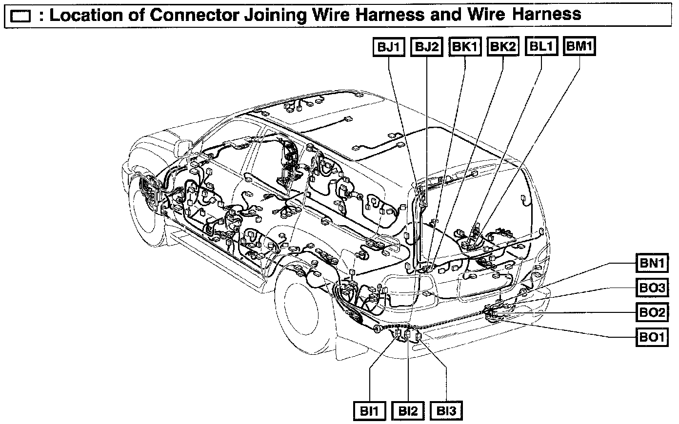 Location Of Connector Joining Wire Harness And Wire Harness (Fig 56):