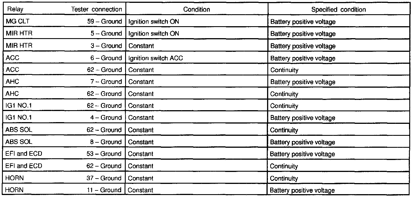 b. Remove the relay from the junction block and inspect the connector on junction block side.