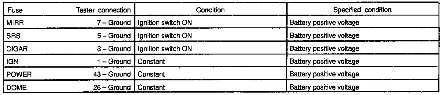 If the circuit is not as specified, inspect the circuits connected to other parts.