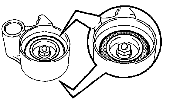 a. Visually check the seal portion of the tensioner for oil leakage.