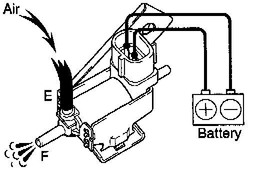 (3) Check that air flows from ports E to F. If operation is not as specified, replace the VSV.