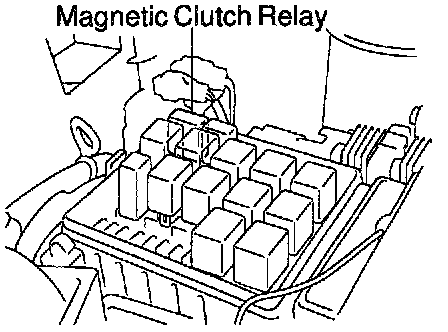 REMOVE MAGNETIC CLUTCH RELAY (Marking: MG CLT) FROM ENGINE ROOM RELAY BLOCK