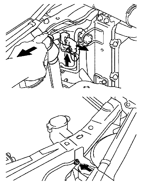 c. Pull the windshield washer tank opening as shown in the illustration