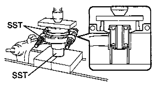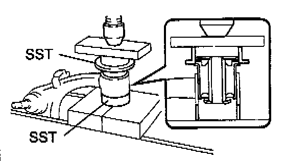 c. Using SST 09316-20011, 09710-28012 (09710-07062), a steel plate and press, install a new bushing.