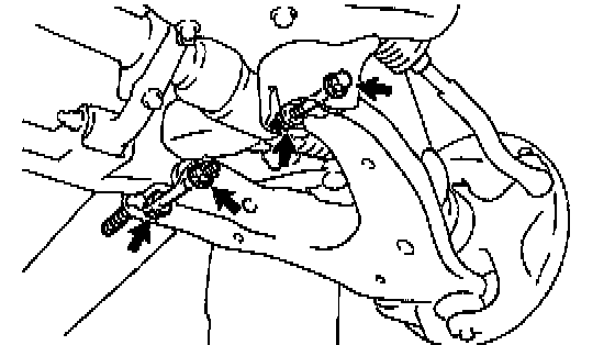 Remove the 2 nuts, 3 bolts and lower suspension arm.