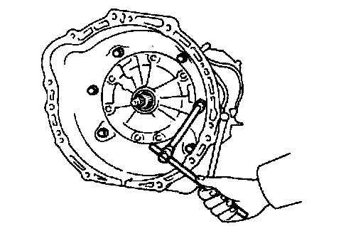 b. Remove the 7 bolts holding the oil pump to the transmission case.