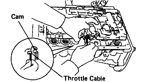 b. Disconnect the throttle cable from the cam and remove the valve body.