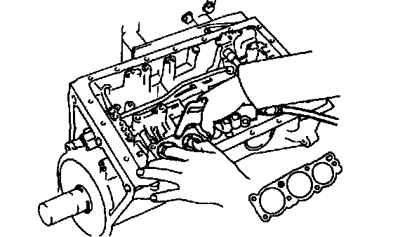 NOTICE: Do not turn the transmission over as this will contaminate the valve body with any foreign matter at the bottom on the pan.