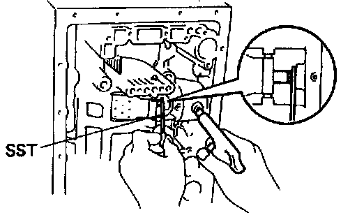 b. Install the blade of SST between the transmission case and oil pan, cut off applied sealer.