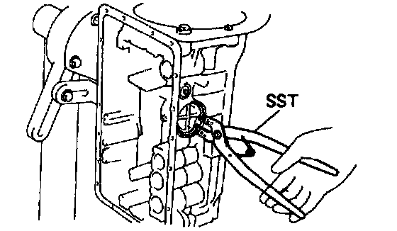 c. Pull the manual valve lever shaft out through the case and remove the manual valve lever.