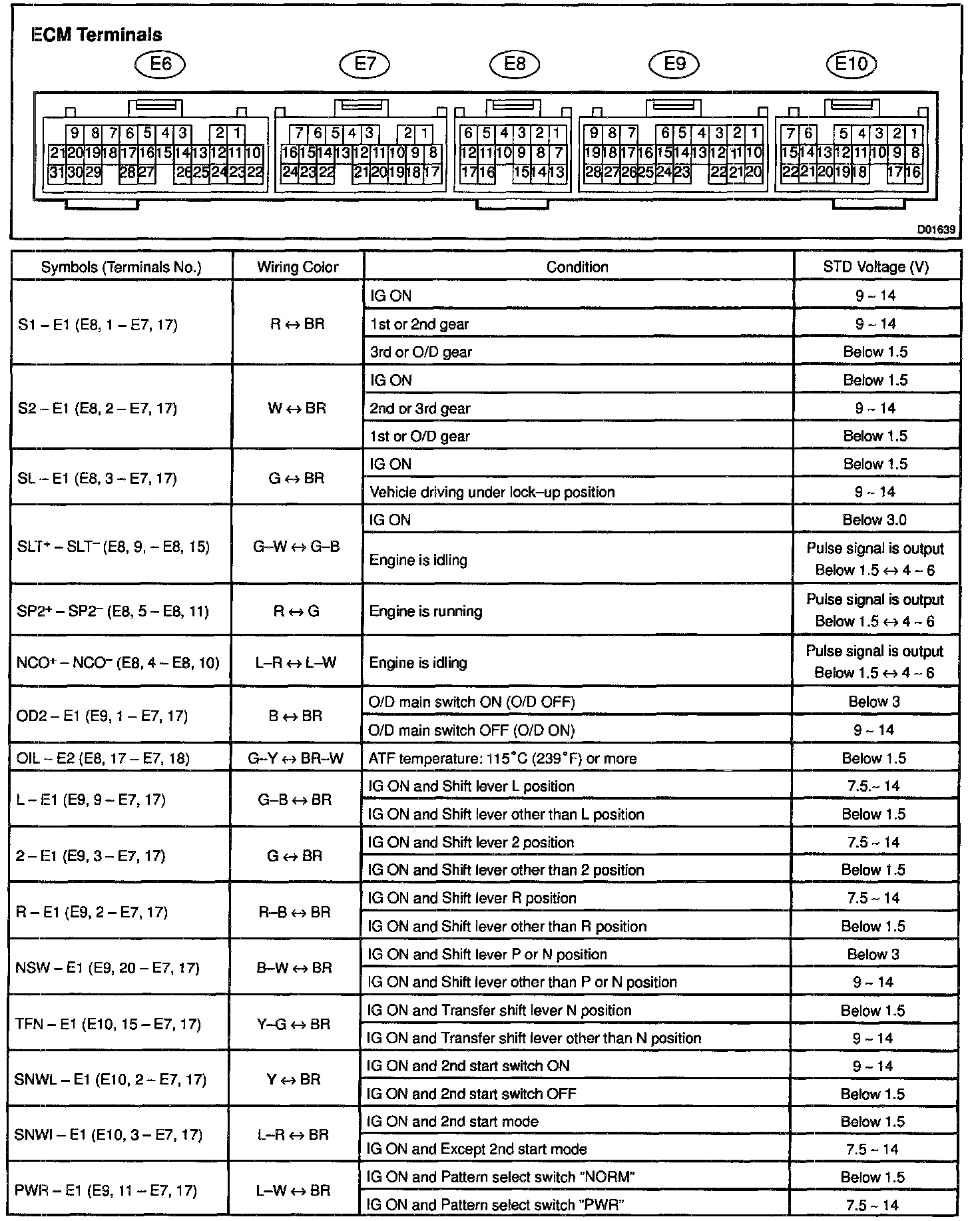 Pinout Values and Diagnostic Parameters