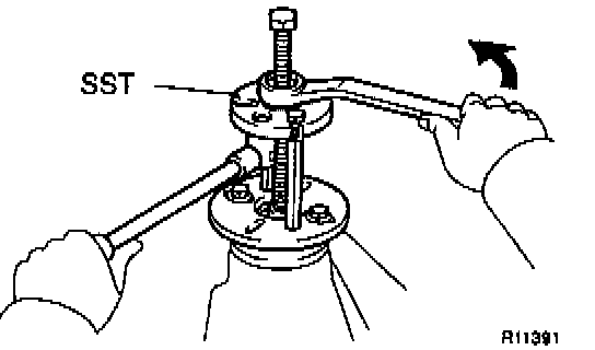 c. Using SST 09950-30010 (09951-03010, 09953-03010, 09954-03010, 09955-03030, 09956-03020), remove the companion flange.