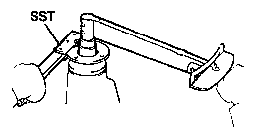 b. Using SST 09330-00021 to hold the flange, remove the nut.