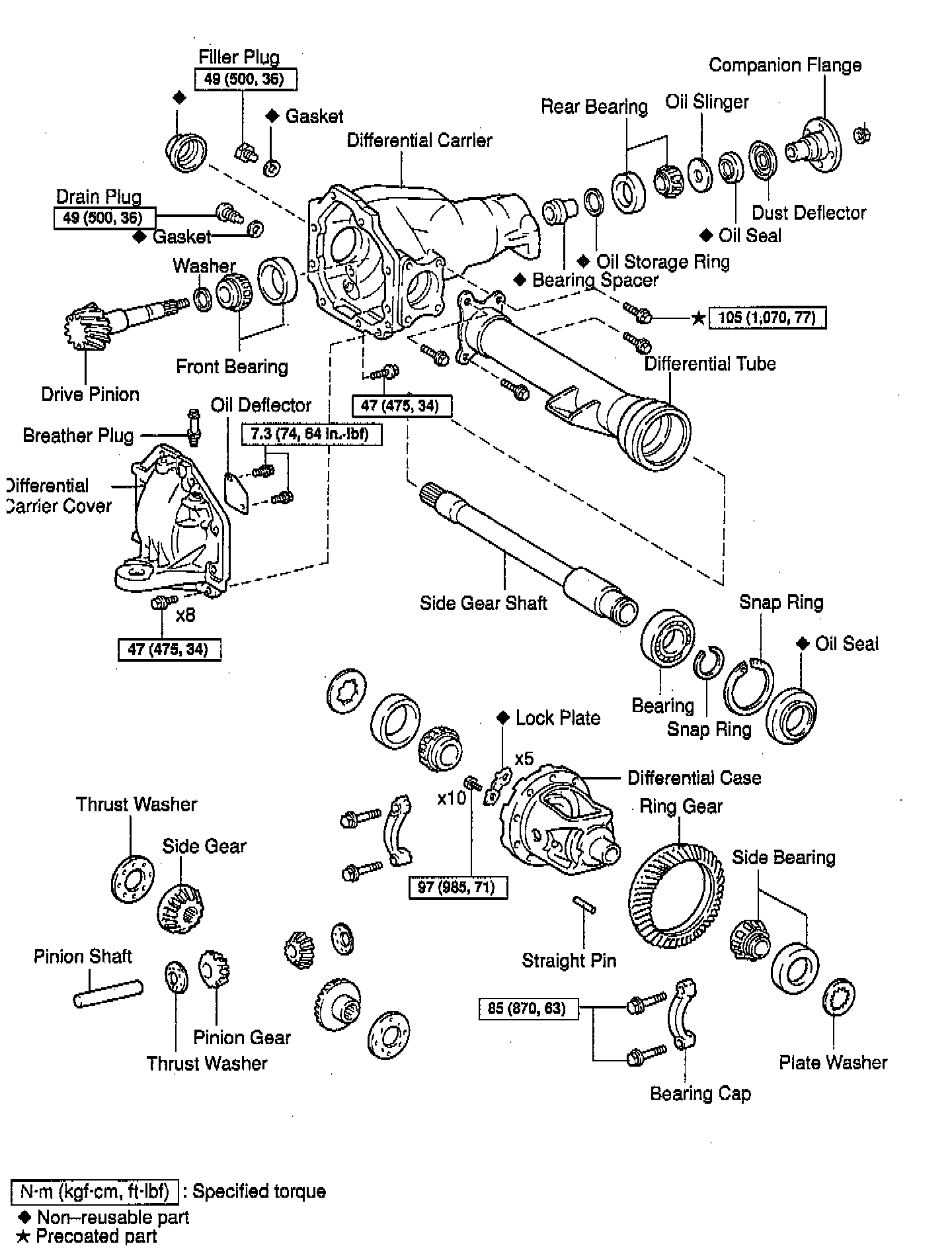 - Reused bearing 0.5-0.8 Nm (4.3-6.9 inch lbs.)