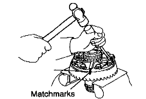 i. Tap on the ring gear with a plastic hammer so that the washers fit to the bearing.