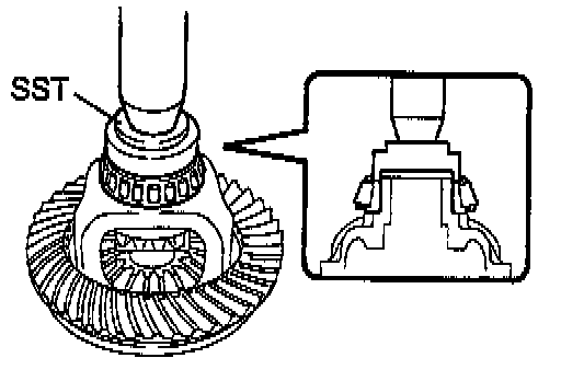 Using SST 0955-22010, remove the rear bearing from the drive pinion.