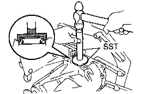 b. Using SST 09554-30011 and a hammer, install a new oil seal.