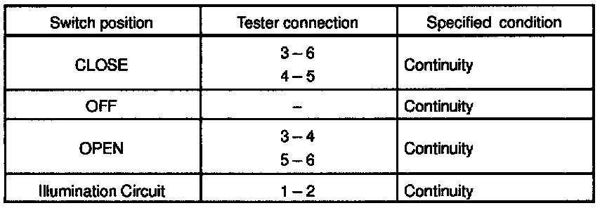 If continuity is not as specified, replace the switch.
