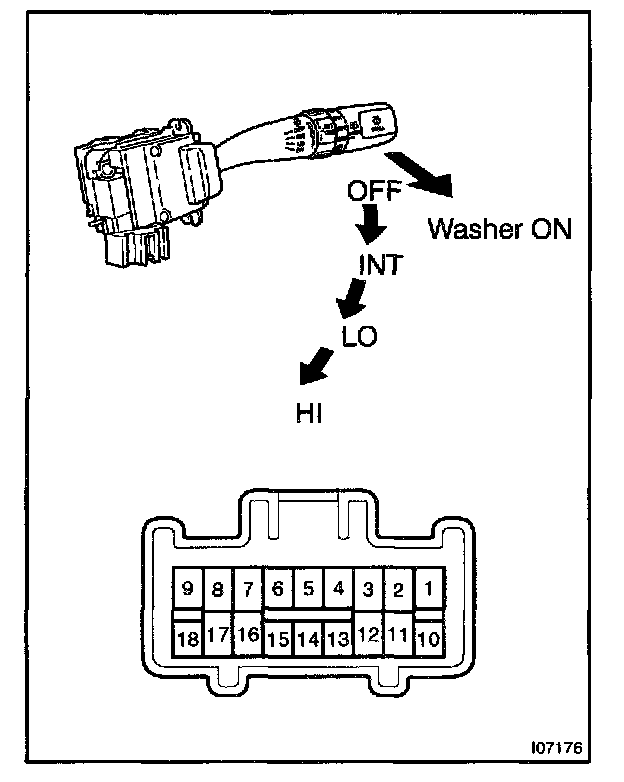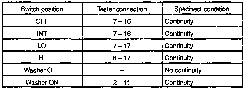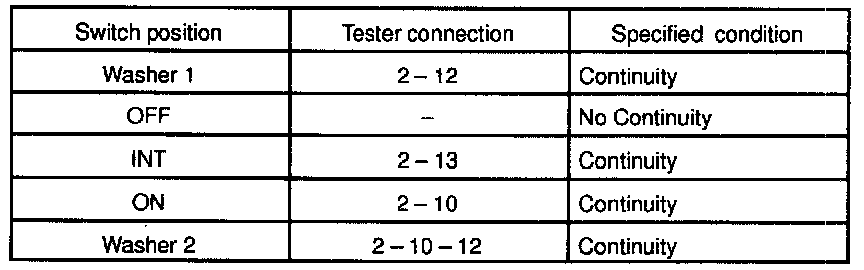 INSPECT FRONT WIPER AND WASHER SWITCH CONTINUITY