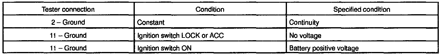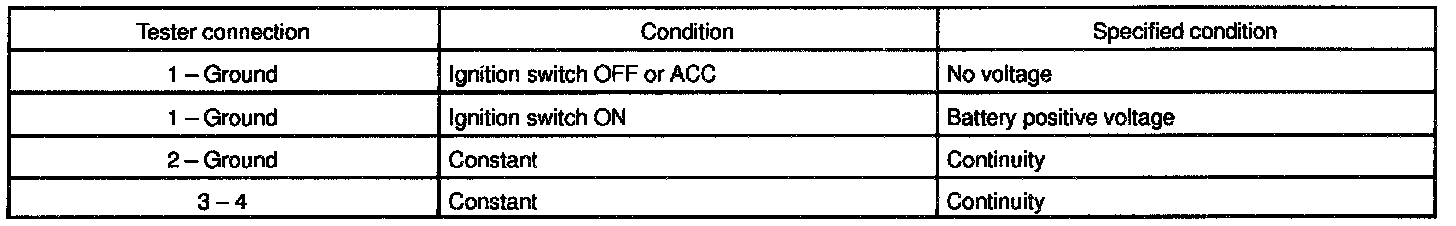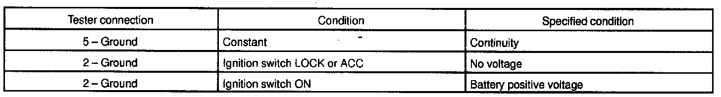 If circuit is not as specified, inspect the power source and wire harness.