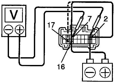 e. After connecting terminal 16 to terminal 17, connect to terminal 2 to terminal 17, check the voltage rises from 0 Volts to battery voltage with in the times, as shown in the table.