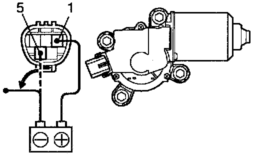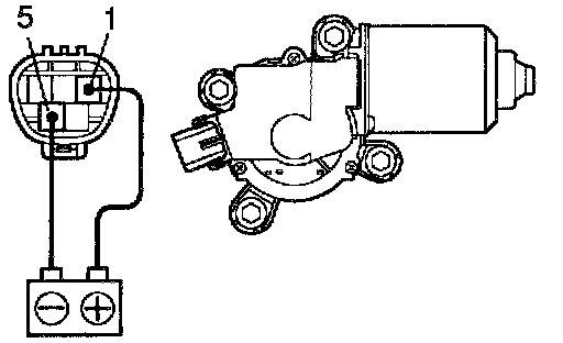 Connect the positive (+) lead from the battery to terminal 1 and the negative (-) lead to terminal 5, check that the motor operates at low speed.