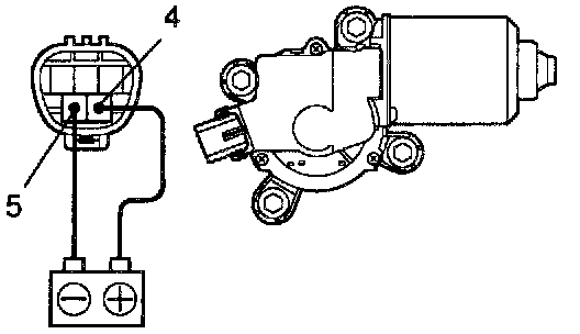 Connect the positive (+) lead from the battery to terminal 4 and the negative (-) lead to terminal 5, check that the motor operates at high speed.