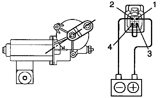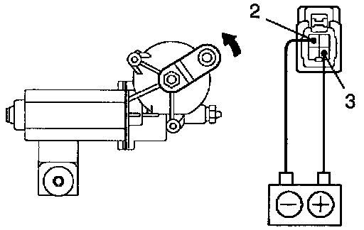 Connect the positive (+) lead from the battery to terminal 3 and negative (-) lead to terminal 2, check that the motor operates at low speed.