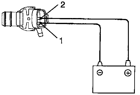 Connect the positive (+) lead from the battery to terminal 2 and the negative (-) lead to terminal 1, check that the motor operates.