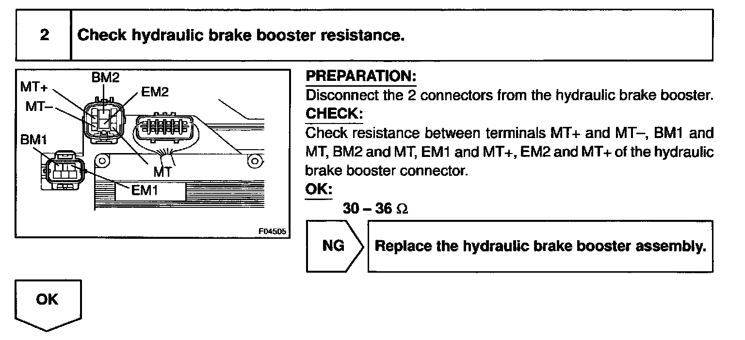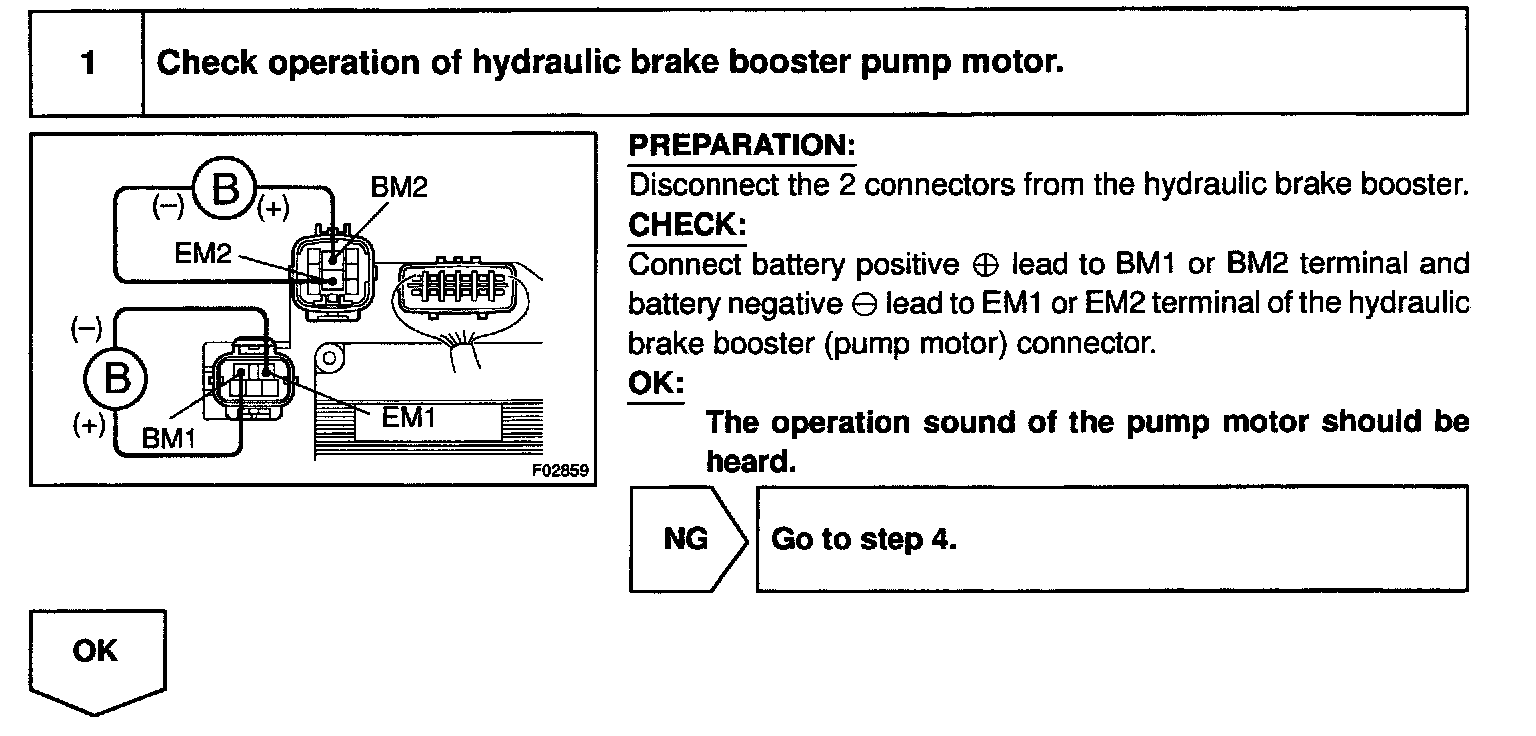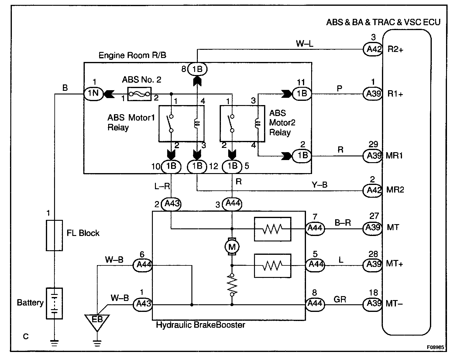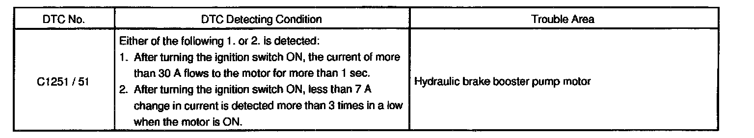 If trouble occurs in the pump motor, the ECU cuts off current to the ABS solenoid relay and prohibits ABS & BA & TRAC & VSC controls