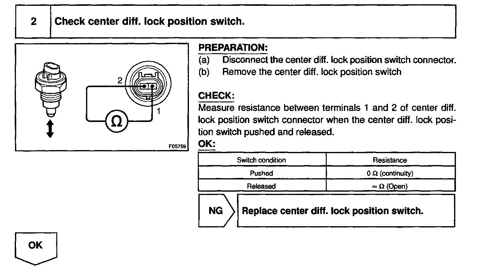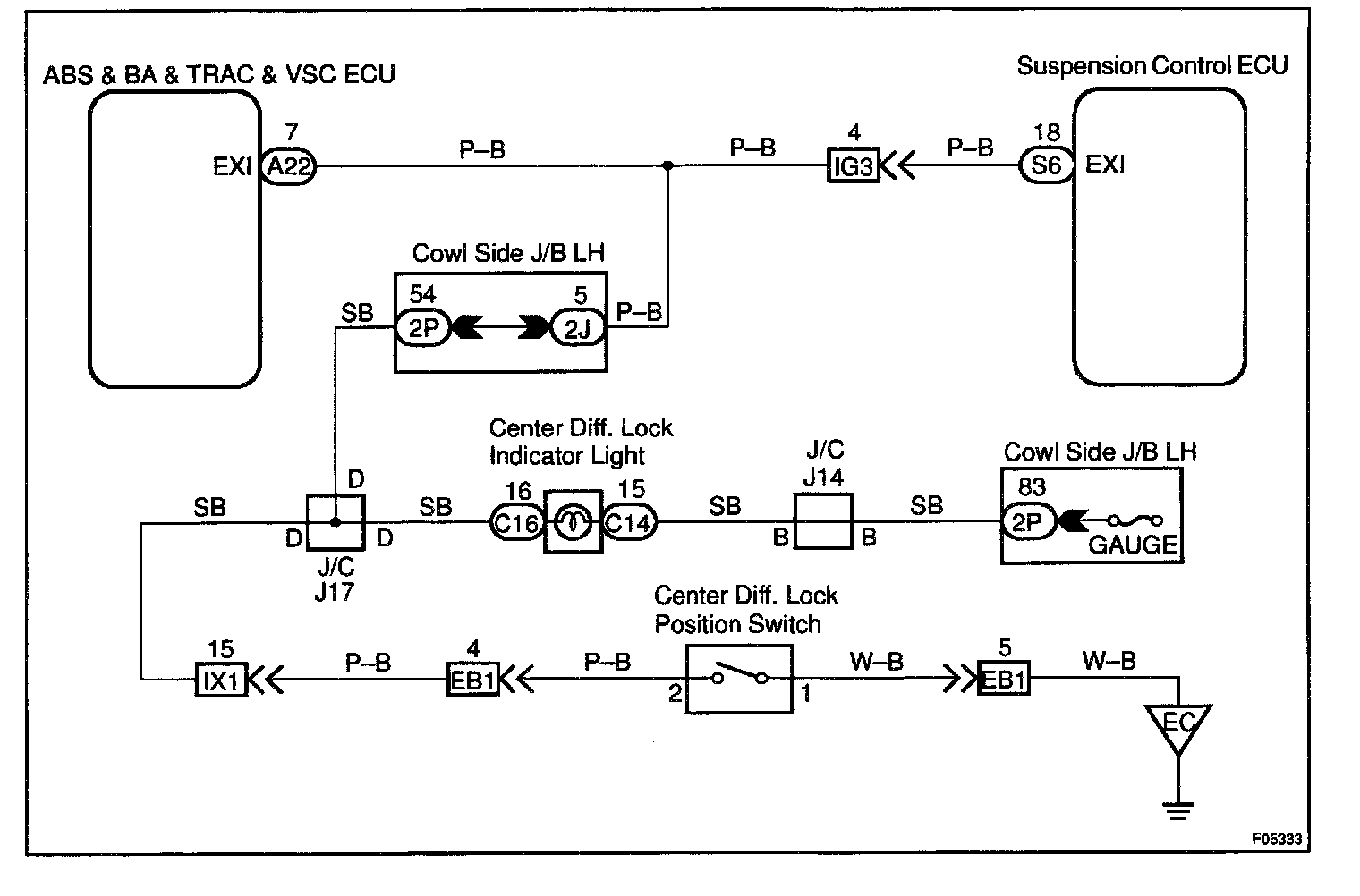 This circuit is sending the signal to the ECU by detecting that the transfer center differential is in the "LOCK" condition.