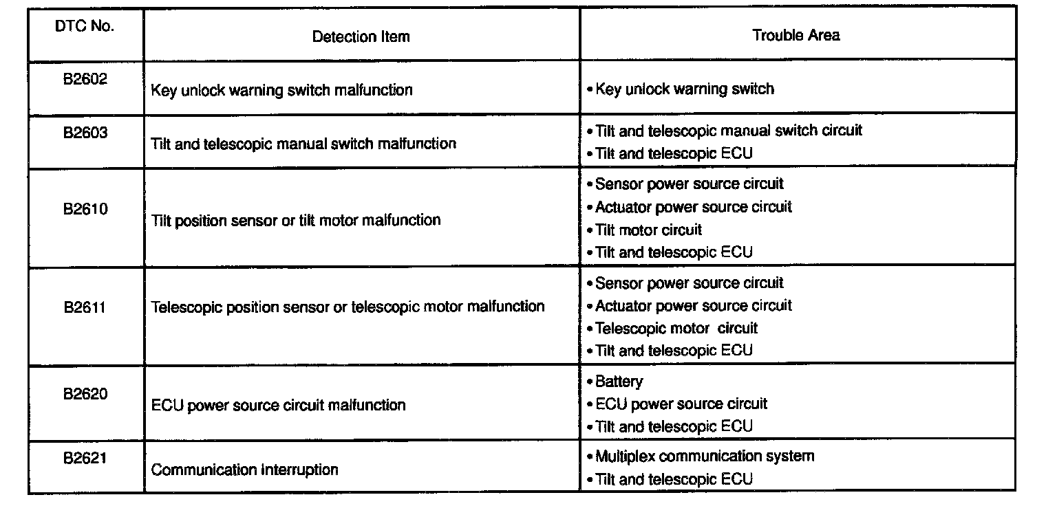 If a DTC is displayed during the DTC check, check the circuit for that code listed in the table.