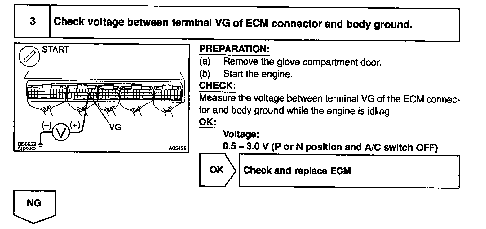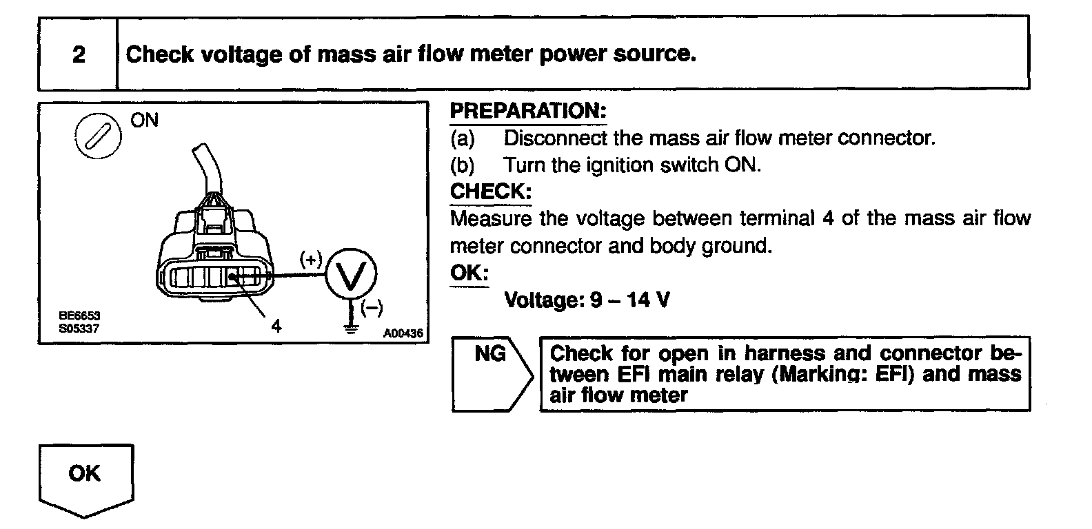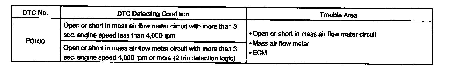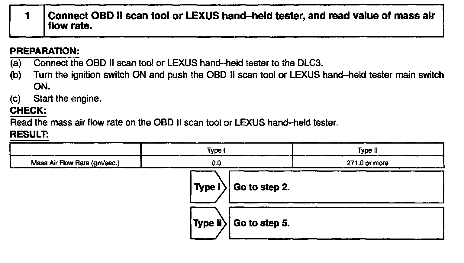 HINT: After confirming DTC P0100, use the OBD II scan tool or LEXUS hand-held tester to confirm the mass air flow ratio from the CURRENT DATA.