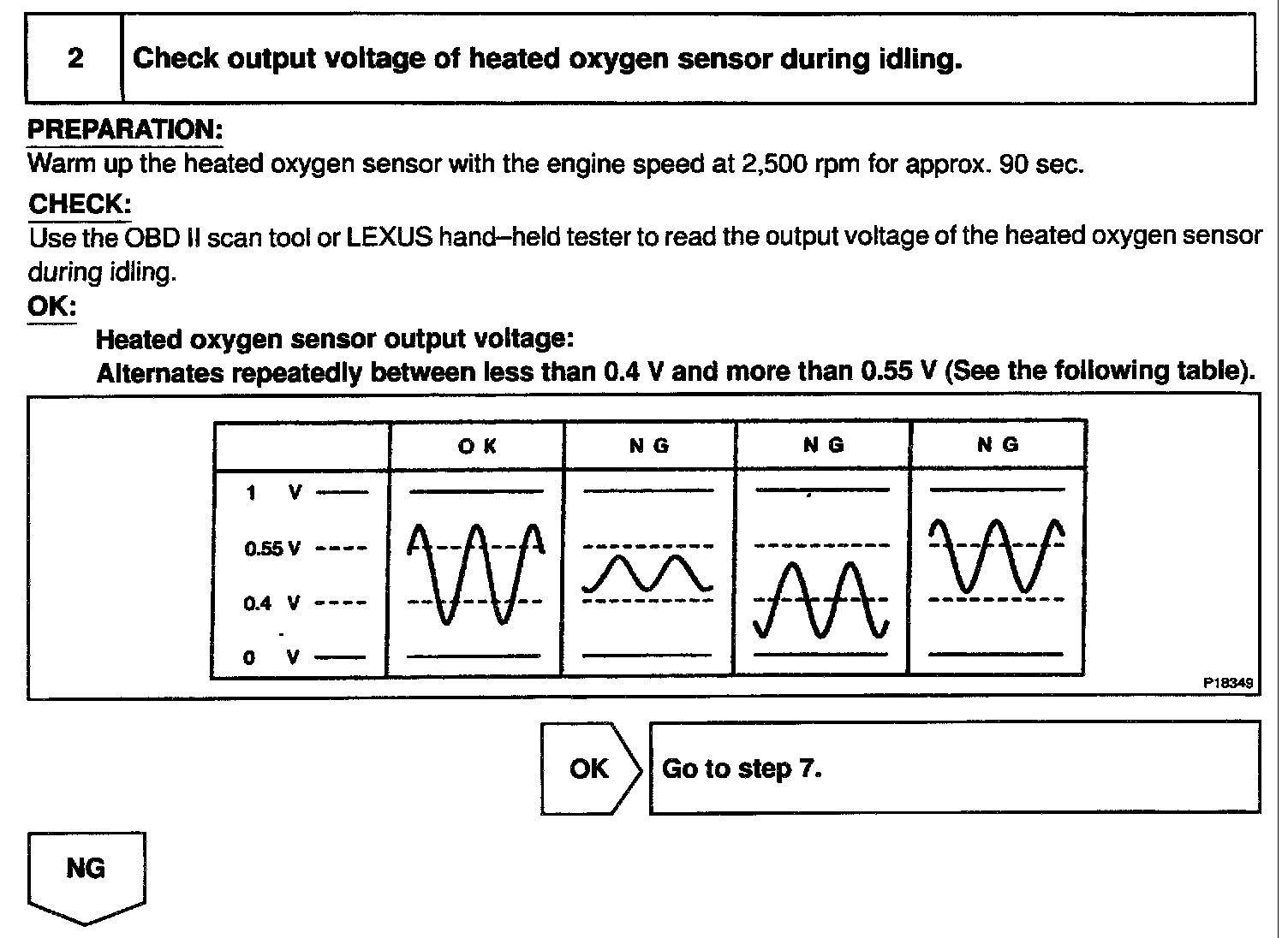 HINT: Read freeze frame data using LEXUS hand-held tester or OBD II scan tool. Because freeze frame records the engine conditions when the malfunction is detected. When troubleshooting it is useful for determining whether the vehicle was running or stopped, the engine was warmed up or not, the air-fuel ratio was lean or rich, etc. at the time of the malfunction.