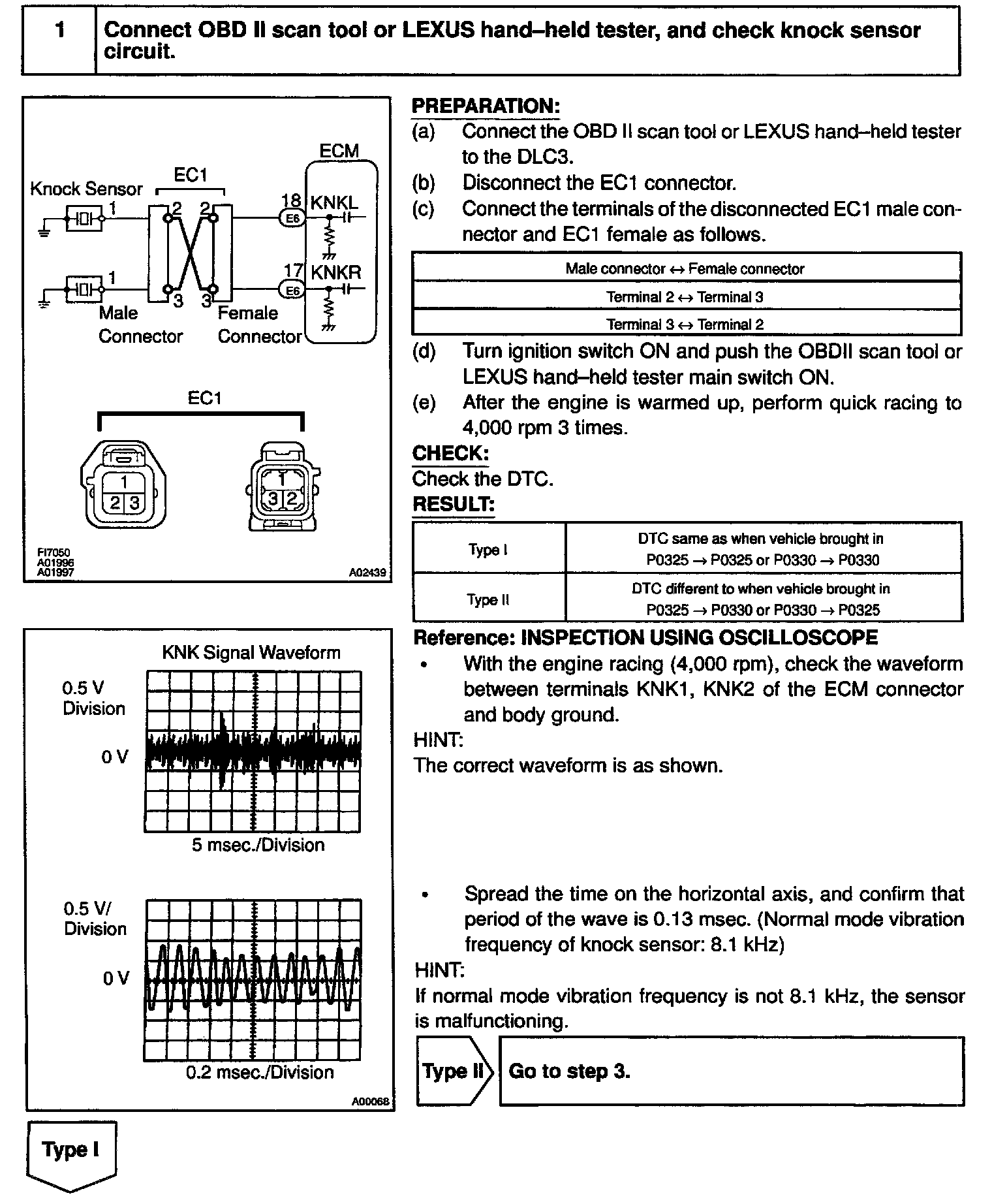 - DTC P0330 is for the right bank knock sensor circuit.