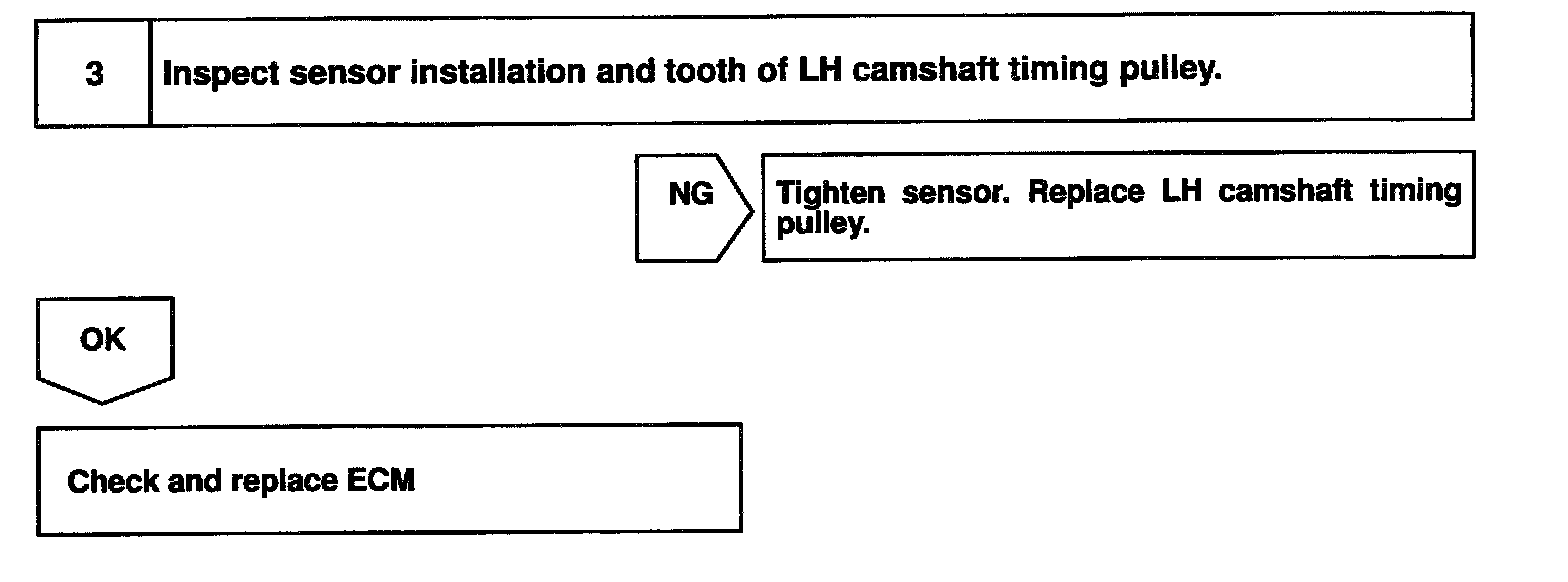 The G signal plate has 1 tooth, on its outer circumference and is installed the LH camshaft timing pulley. When the camshafts rotate, the protrusion on the signal plate and the air gap on the pickup coil change, causing fluctuations in the magnetic field and generating an electromotive force in the pickup coil. The NE signal plate has 34 teeth and is mounted on the crankshaft. The NE signal sensor generates 34 signals at every engine revolution. The ECM detects the standard crankshaft angle based on the G signal and the actual crankshaft angle and the engine speed by the NE signal.