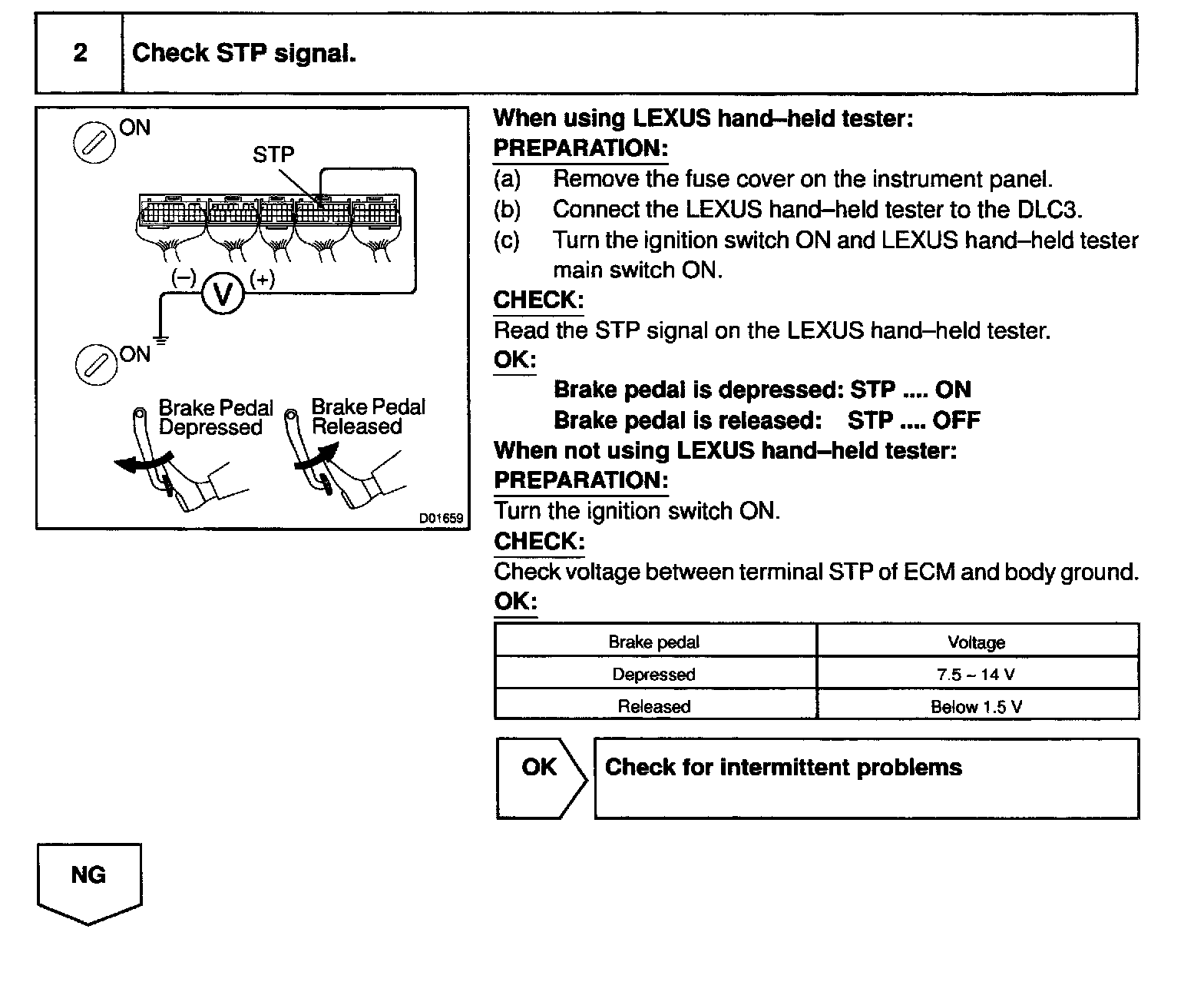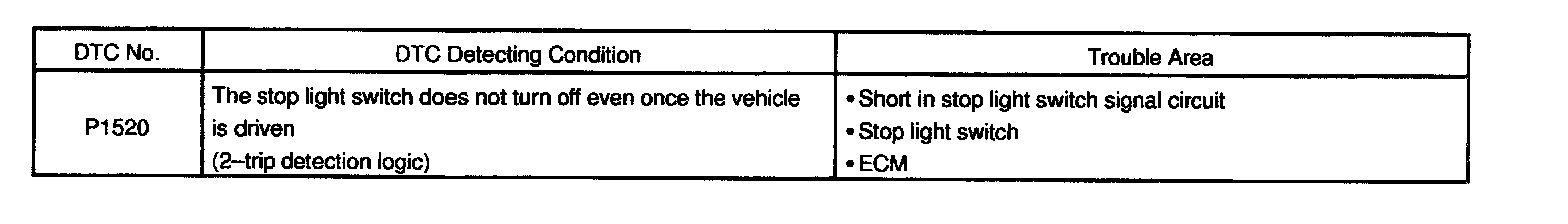 When the brake pedal is operated, this switch sends a signal to ECM. Then the ECM cancels operation of the lock-up clutch while braking is in progress.