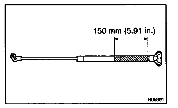 - If the back door stay is to be replaced, drill a 2.0 - 3.0 mm (0.079 - 0.118 in.) hole in the bottom of the back door stay as shown in the illustration to completely release the high-pressure gas before disposing of it.