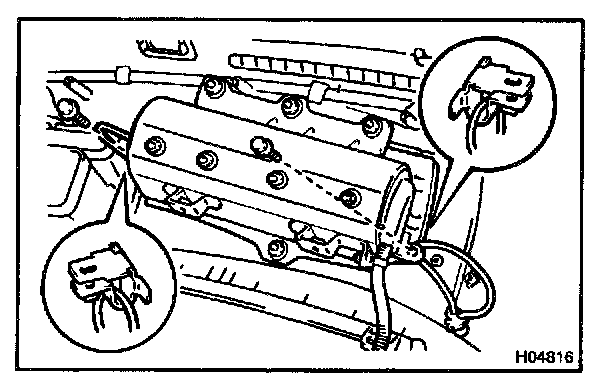 - When installing the front passenger airbag assembly, take care that the wiring does not interfere with other parts and is not pinched between other parts.