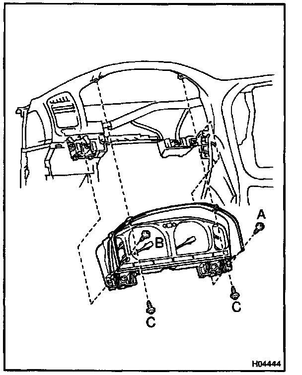 c. Install the combination meter by tightening the screws, A, B and C in the order.