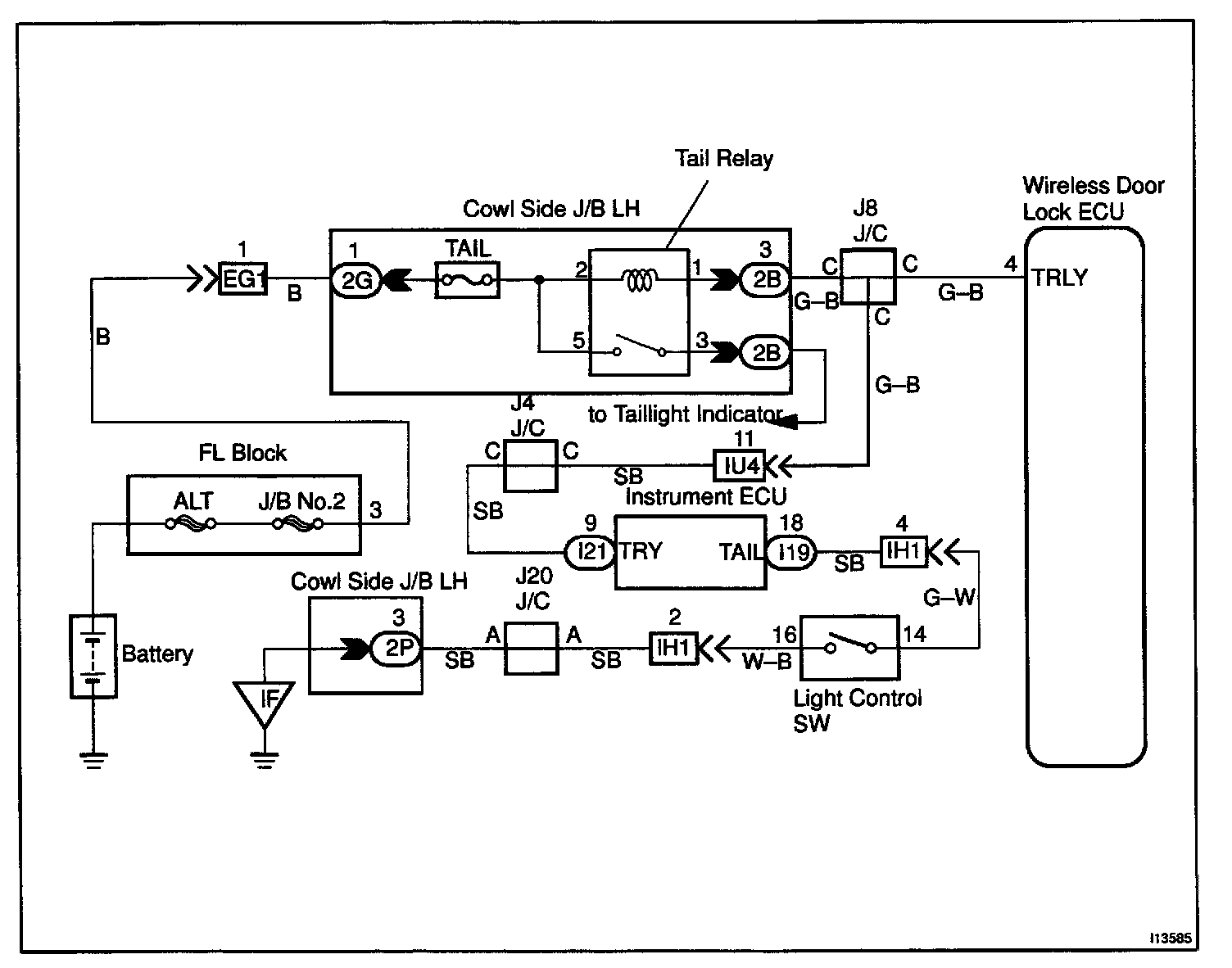CIRCUIT DESCRIPTIONTRLY terminal outputs the signal once when pressing the LOCK switch of the transmitter and twice when pressing the UNLOCK switch and then makes the taillight come to light.