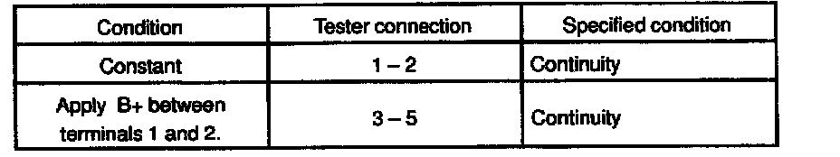 b. Connect the positive (+) lead from the ammeter to terminal 3 and the negative (-) lead to battery negative (-) terminal, and check that the current changes from approximately 3.2 A to less than 0.5 A within 20 to 70 seconds.