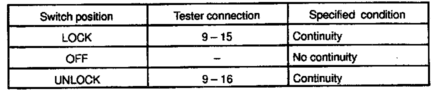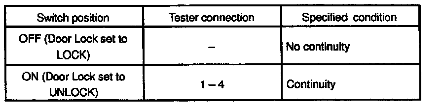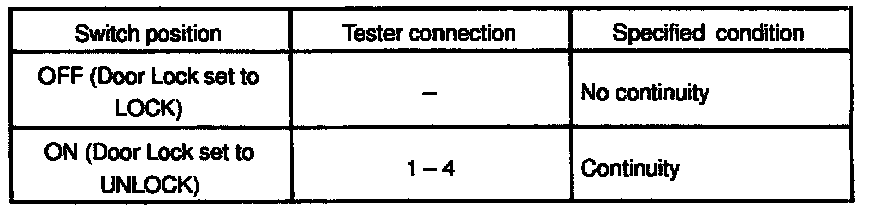 5. INSPECT DOOR KEY LOCK AND UNLOCK SWITCH CONTINUITY