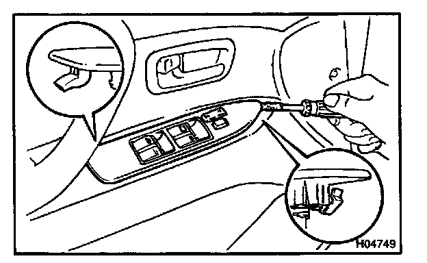 a. Using a screwdriver, remove the power window switch as shown in the illustration.