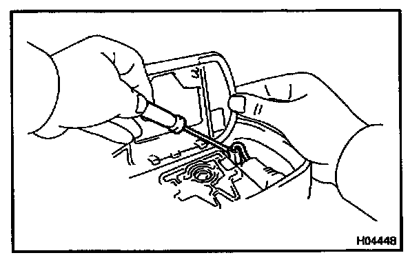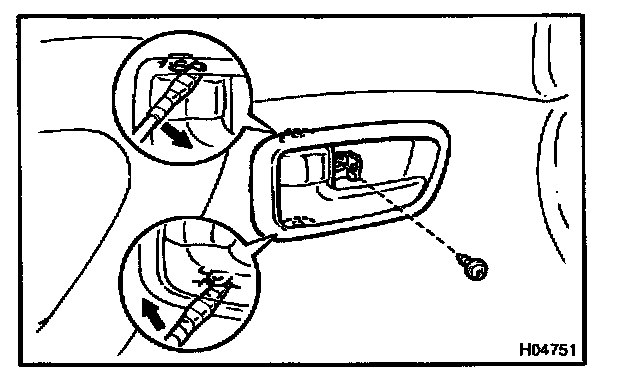 c. Using a screwdriver, remove the inside handle bezel as shown in the illustration.