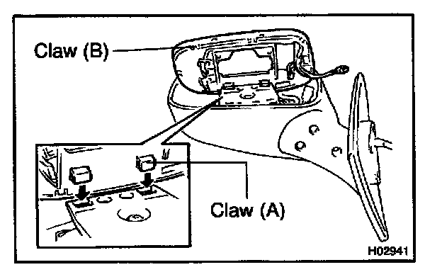 b. Connect the claws (A) and set the mirror to the mirror body.